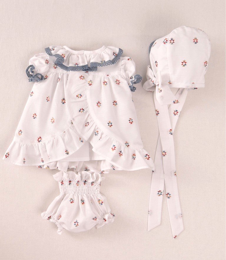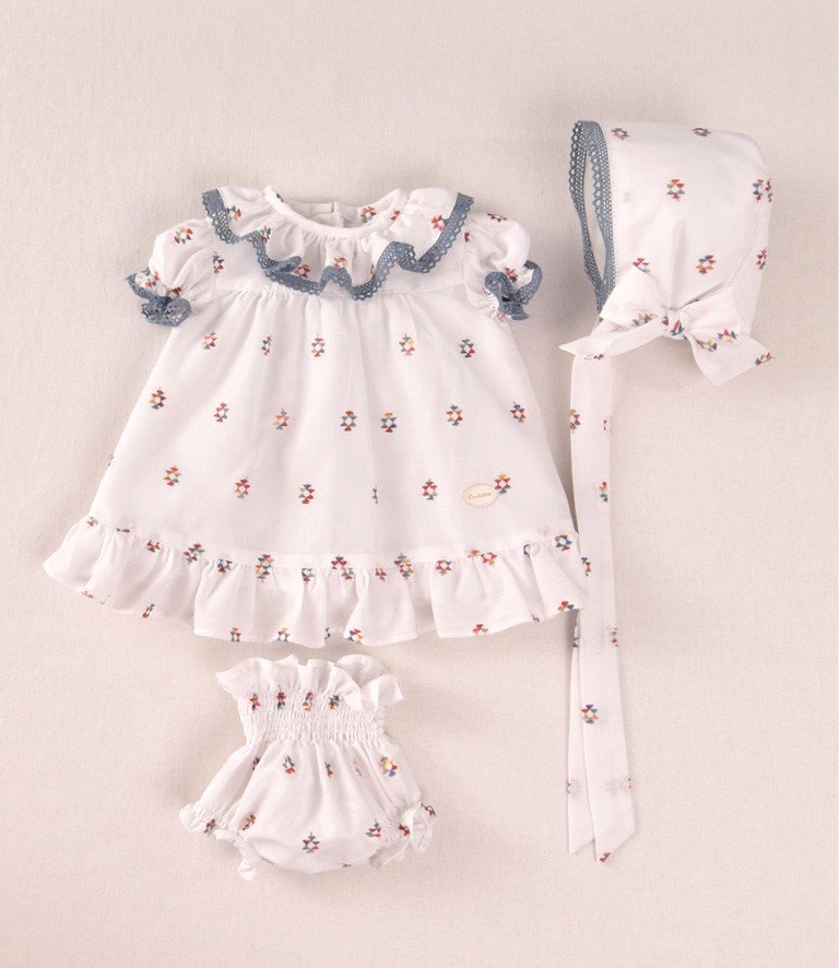 02-57003 VESTIDO BORDADO BEBE 3 PIEZAS COCOTE