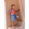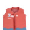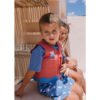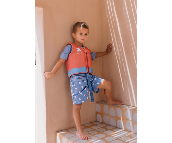 Además cuenta con una cinta ajustable con cierre de seguridad que se coloca entre las piernas, impidiendo que el chaleco se desplace hacia arriba cuando el niño se lanza al agua o simplemente flota. Además, la cinta está protegida con neopreno suave para evitar rozaduras.