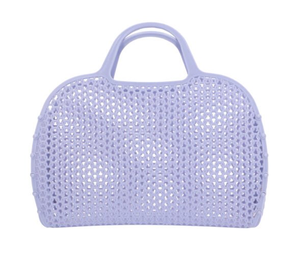 Con originales colores y un diseño ligero y práctico, esta bolsa es perfecta para playa, piscina o paseos por la ciudad. Su material de plástico LDPE reciclable y la rejilla integrada la hacen resistente, fácil de limpiar y totalmente desmontable.