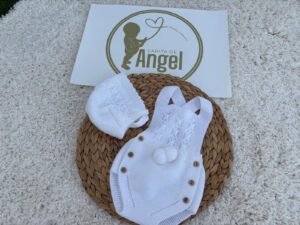 Un diseño elegante y atemporal, perfecto para vestir al bebé con estilo y confort en sus primeros meses.