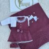 Disponible en los colores berenjena, rosa bebé y rosa empolvado, todos tonos dulces y actuales que realzan la ternura del conjunto.