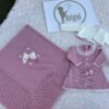 El modelo 1810 es un conjunto clásico y elegante de punto para bebé, pensado para las primeras puestas y ocasiones especiales.