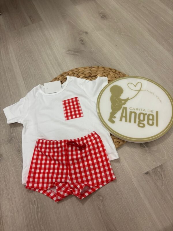 CONJUNTO BAÑO NIÑO CUADRO VICHY ROJO