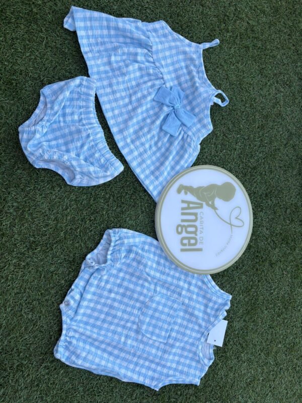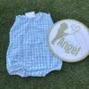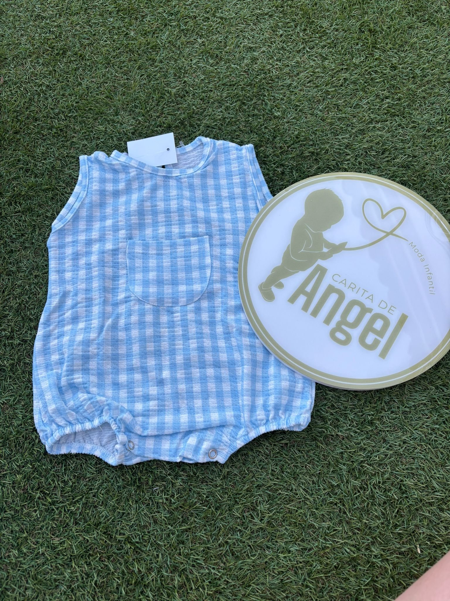 Pelele unisex cuadro vichy celeste de algodón.