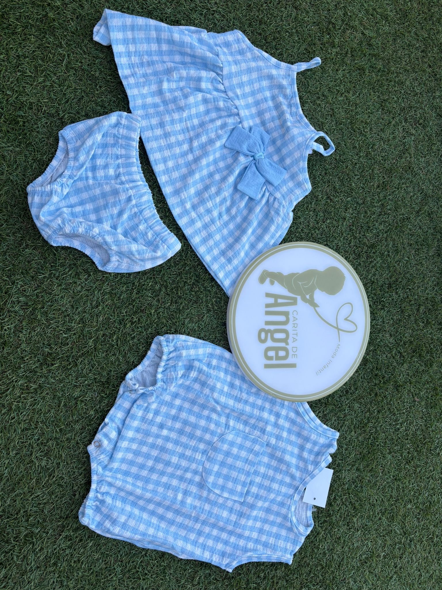 Viste a tu bebé con nuestro adorable pelele unisex de cuadro vichy celeste, perfecto para el verano. Confeccionado en suave algodón, es ligero y transpirable, ideal para mantener a tu bebé fresco y cómodo en los días calurosos, convirtiéndolo en la elección perfecta para cualquier ocasión. ¡Haz que tu bebé brille con estilo y comodidad!