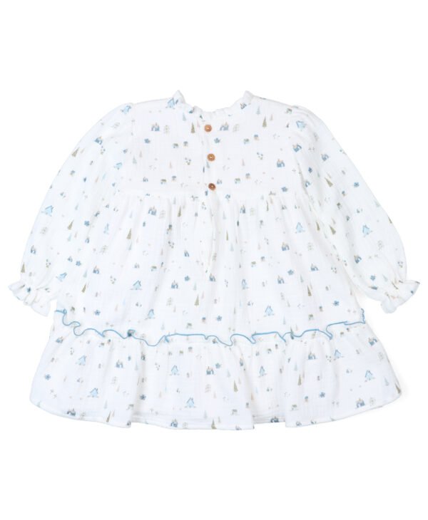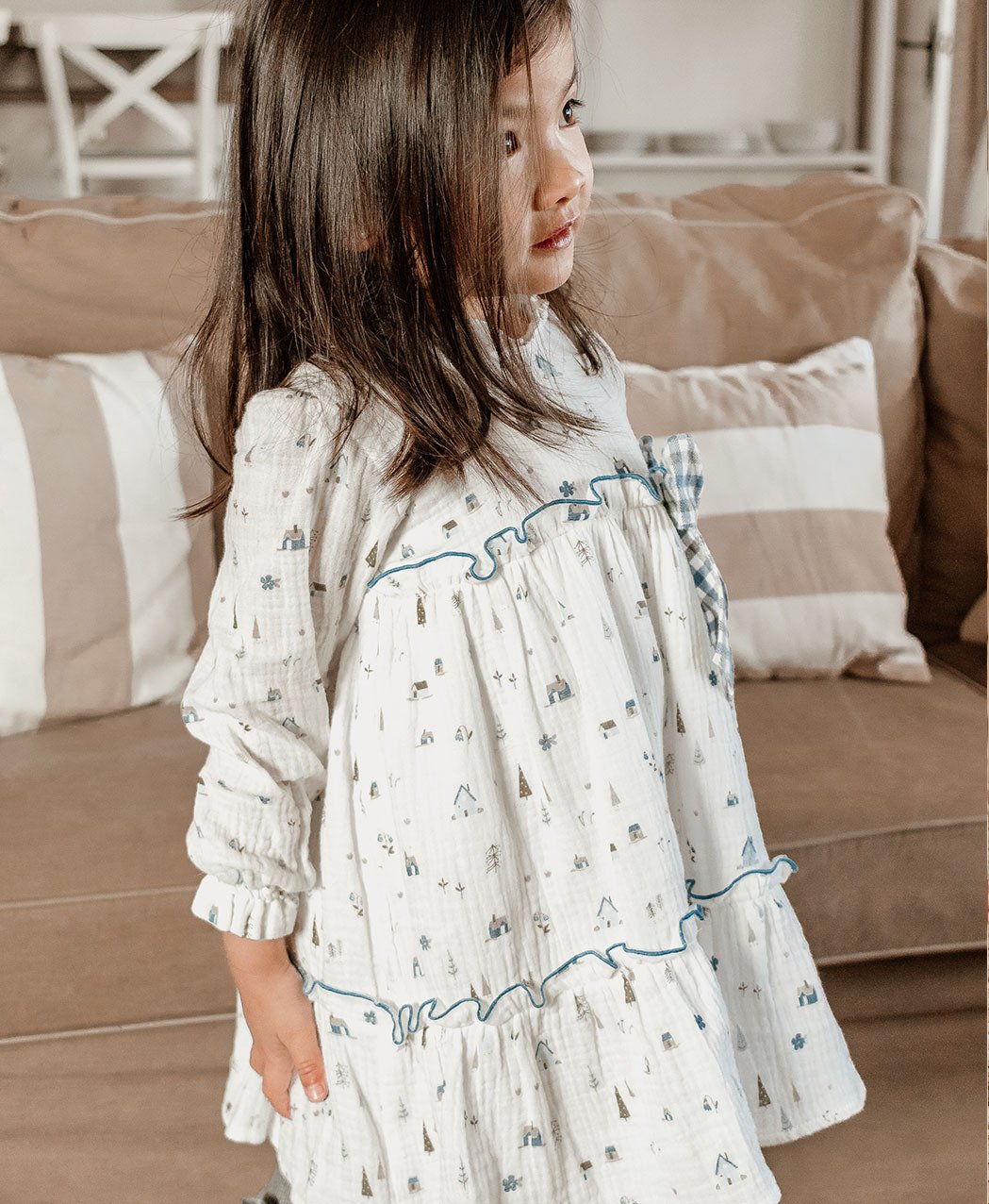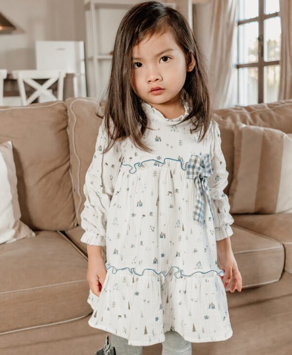 ✔️ Corte fluido con caída natural y acabados fruncidos en cuello y mangas, que realzan el encanto infantil.