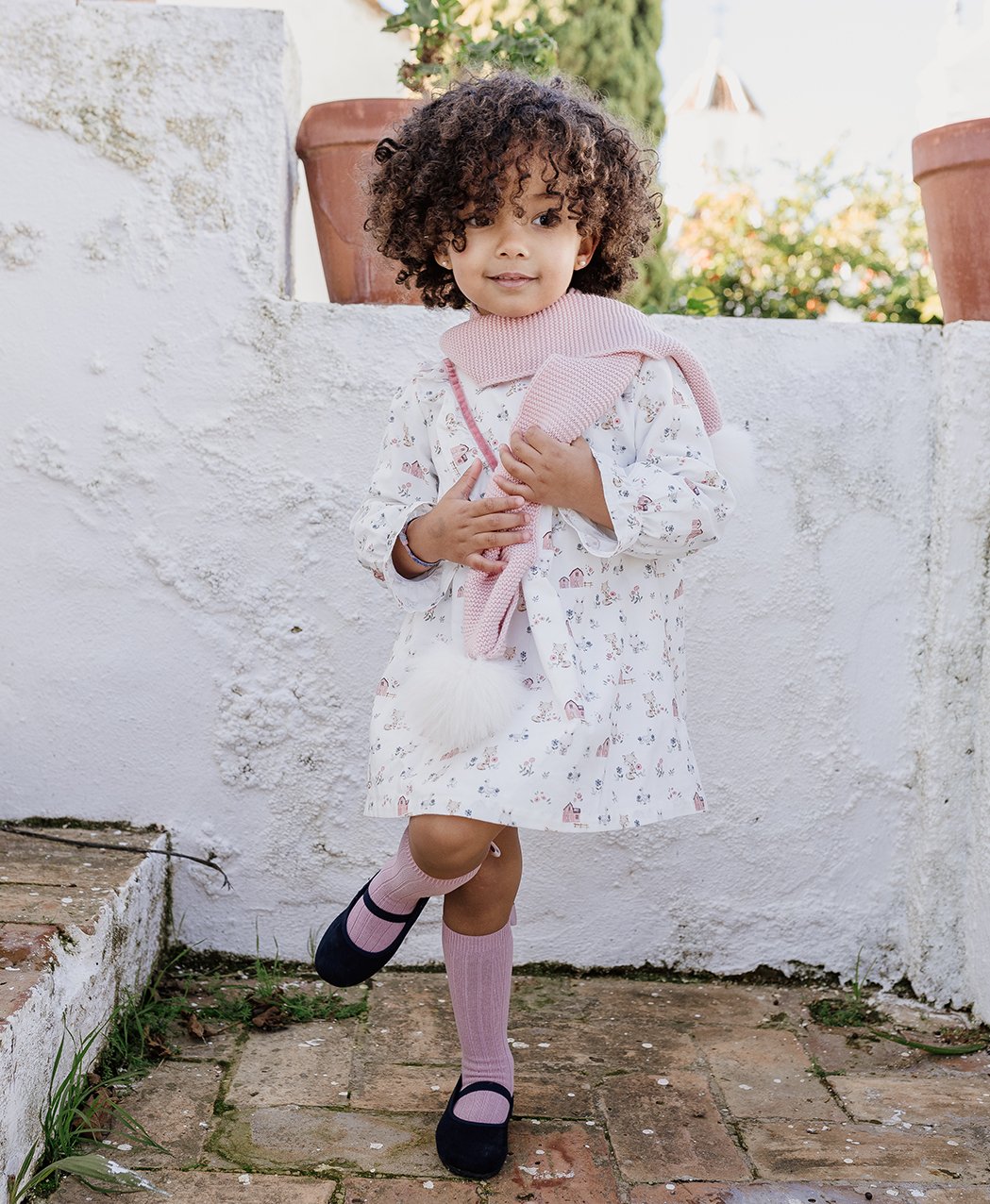 Dulzura, comodidad y encanto rural en una sola prenda. Este vestido de la marca Popys pertenece a la colección otoño/invierno y está pensado para llenar de ternura los días más frescos. Su diseño, con un estampado de granjita, invita a soñar con aventuras en el campo y juegos al aire libre.